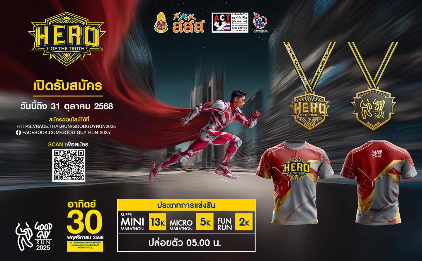 GOOD GUY RUN 2025 Facebook Official Page :https://www.facebook.com/profile.php?id=61579650700820จัดโดย : สำนักงานคณะกรรมการป้องกันและปราบปรามการทุจริตแห่งชาติ (ป.ป.ช.)