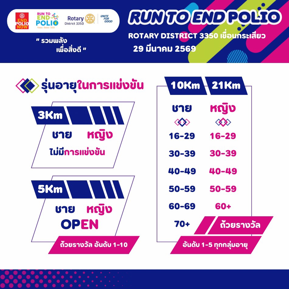 RUN TO END POLIO Mini-Half Marathon 2026 Facebook Official Page :https://www.facebook.com/profile.php?id=61573543503085Mobile : 0922629635จัดโดย : Run To End Polio