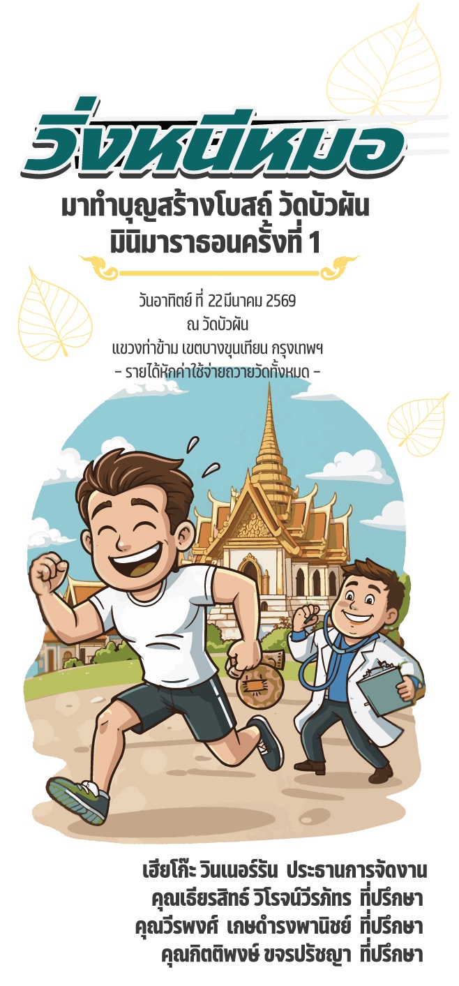 วิ่งหนีหมอ มาทำบุญสร้างโบสต์วัดบัวผัน มินิมาราธอน ครั้งที่ 1 จัดโดย : วิ่งหนีหมอ มาทำบุญสร้างโบสต์วัดบัวผัน มินิมาราธอน ครั้งที่ 1
