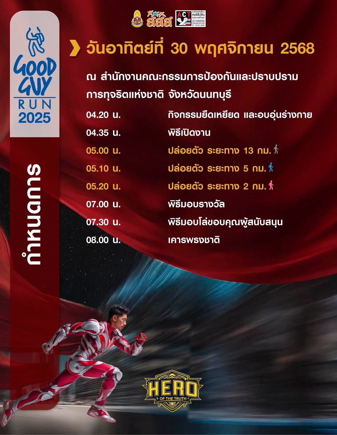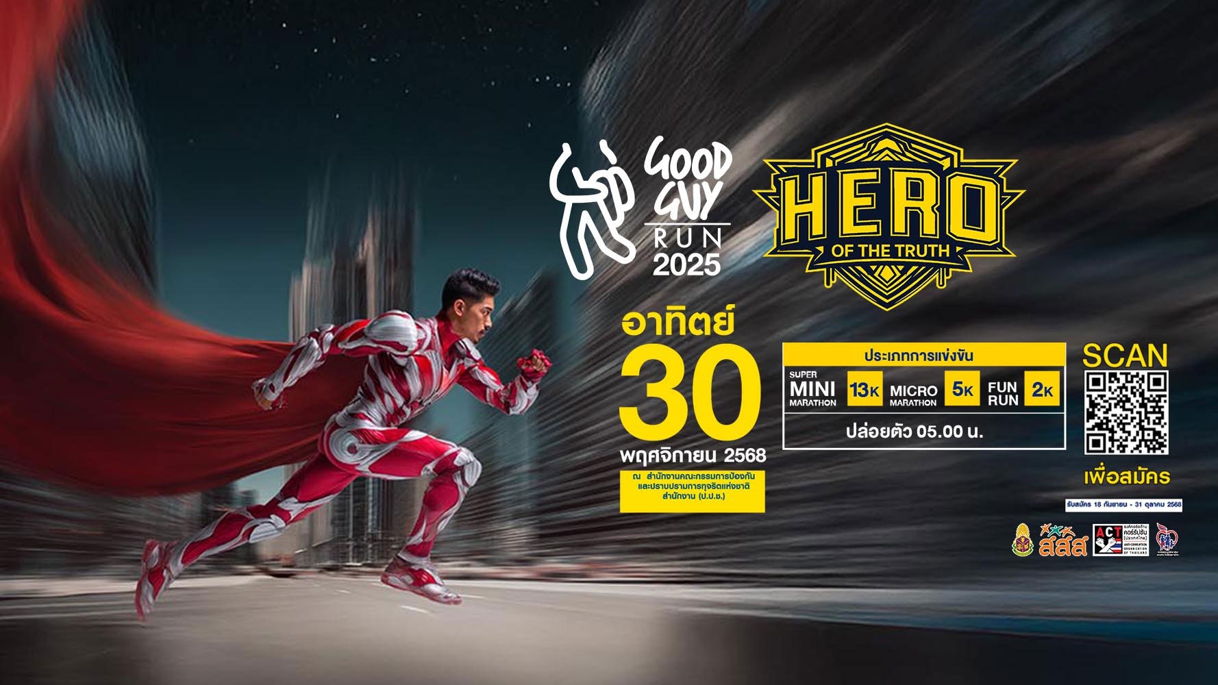 GOOD GUY RUN 2025 Facebook Official Page :https://www.facebook.com/profile.php?id=61579650700820จัดโดย : สำนักงานคณะกรรมการป้องกันและปราบปรามการทุจริตแห่งชาติ (ป.ป.ช.)